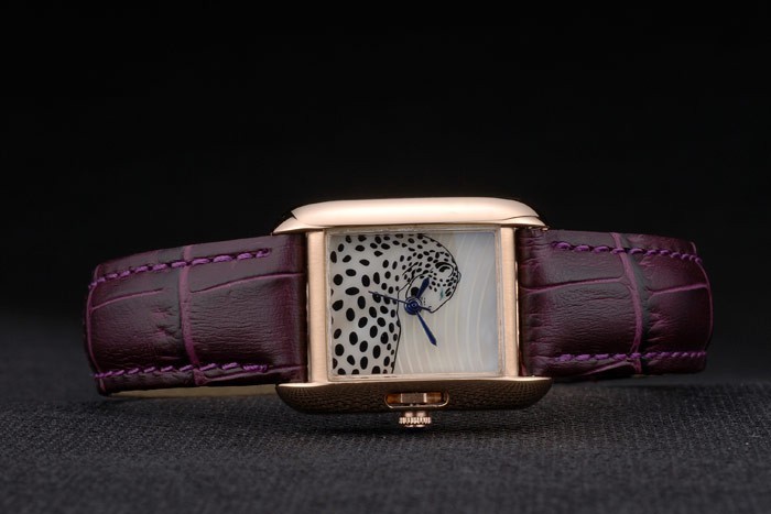 Bracelet de acero inoxidable: el calor correa de piel de cocodrilo de color púrpura en relieve Cartier rosa de 18 quilates chapado en oro plegable en cierre de hebilla