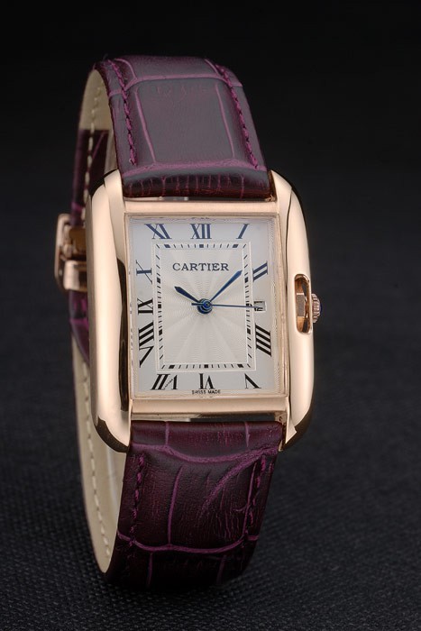 Bracelet de acero inoxidable: el calor correa de piel de cocodrilo de color púrpura en relieve Cartier rosa de 18 quilates chapado en oro plegable en cierre de hebilla