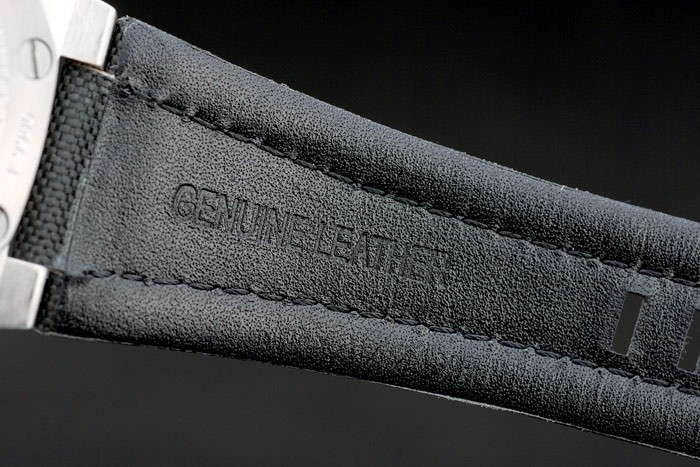 Bracelet acero inoxidable cepillado: Negro tela forrada de cuero repujado de calor correa de Audemars Piguet con el logotipo grabado cepillado de gancho de acero inoxidable clasp