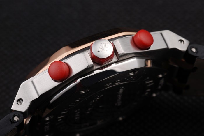 Crown: goma rojo corona hexagonal con la AP iniciales en perno de acero inoxidable además de una corona redonda de goma roja a ambos lados de it