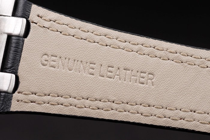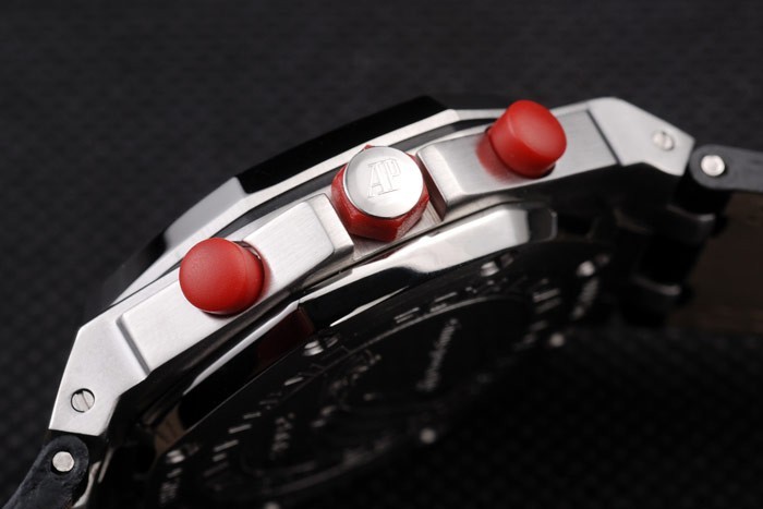 Bracelet de acero inoxidable: El calor en relieve correa de piel de cocodrilo negro Audemars Piguet con costuras de color rojo doble y Audemars Piguet grabado cepillado plegable en acero inoxidable clasp