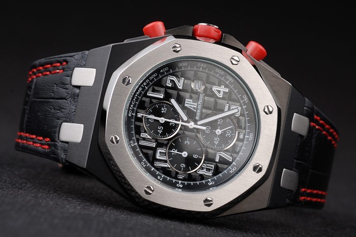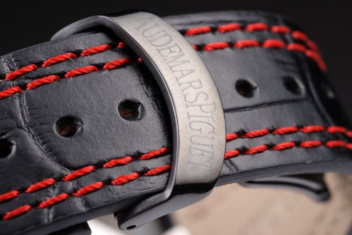 Bracelet de acero inoxidable: El calor en relieve correa de piel de cocodrilo negro Audemars Piguet con costuras de color rojo doble y Audemars Piguet grabado de iones de chapado plegable en clasp
