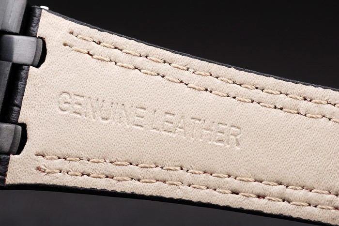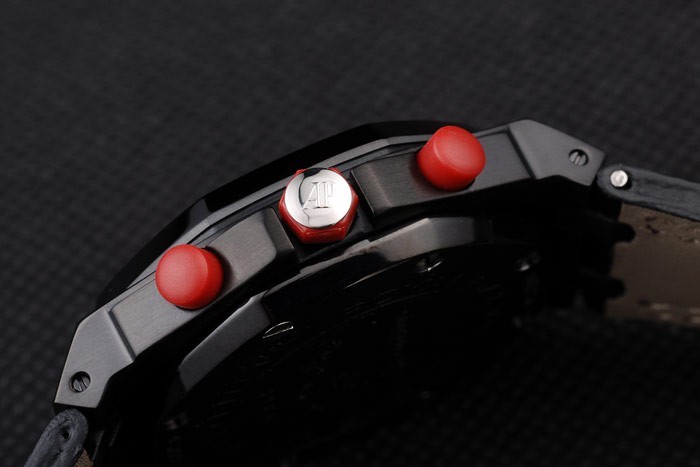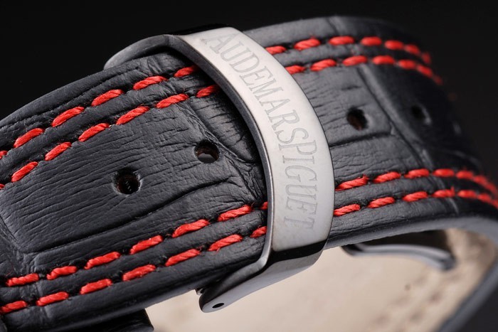 Bracelet de acero inoxidable: El calor en relieve correa de piel de cocodrilo negro Audemars Piguet con costuras de color rojo doble y Audemars Piguet grabado iónico chapado plegable en clasp