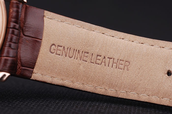 Bracelet de acero inoxidable: correa de piel de cocodrilo marrón con el calor en relieve Audemars Piguet nombre y el logotipo y un Audemars Piguet inscriben rosa de 18 quilates chapado en oro-flip-sobre el gancho clasp