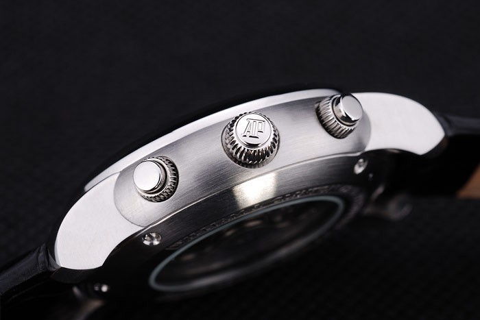 Crown: acero acero corona calado con el logotipo de Audemars Piguet y dos coronas con teclas más pequeñas a cada lado de it