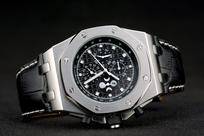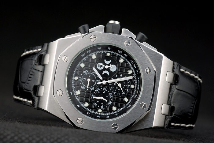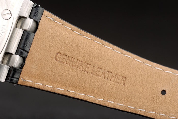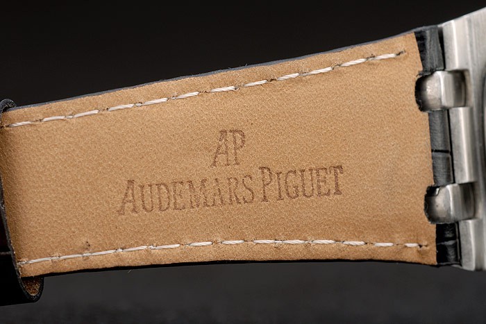 Bracelet de acero inoxidable: Audemars Piguet correa de piel de cocodrilo negro grabado en relieve de calor con Audemars Piguet grabado pulido gancho de acero inoxidable clasp