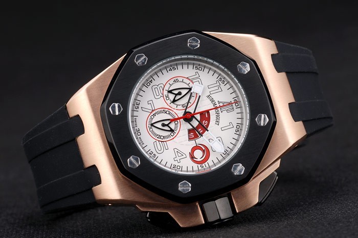 Bracelet de acero inoxidable: correa de caucho Negro con relieve de calor Audemars Piguet Royal Oak Offshore sello y un Audemars Piguet inscrito ion-plateado gancho hebilla clasp