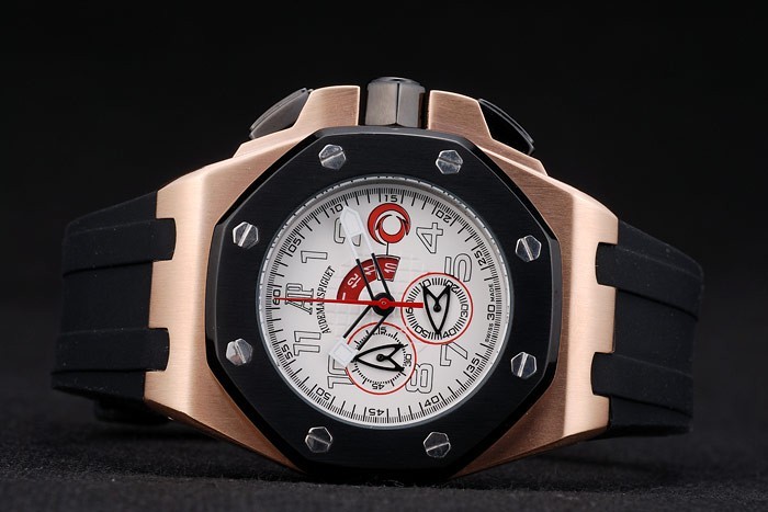 Volver: Rose-chapado en oro atornillado atrás con Royal Oak Offshore Alinghi grabado y logo