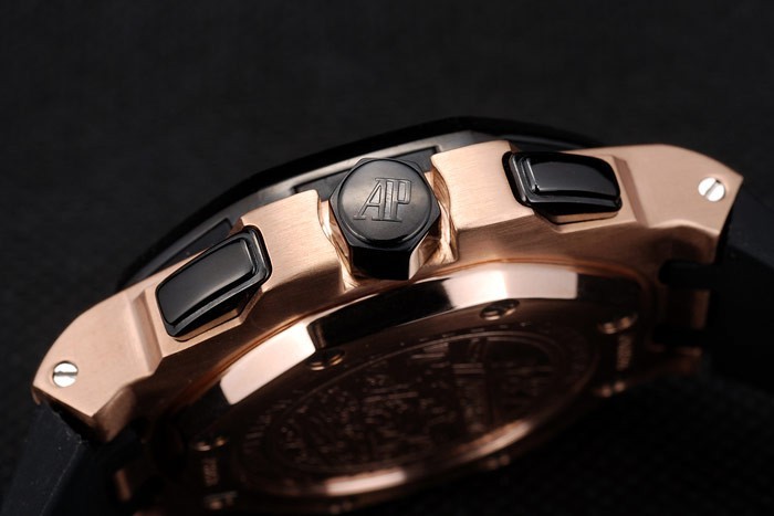 Crown: logotipo de Audemars Piguet grabado iónico chapado cutwork corona en septiembre entre un muro de protección con dos coronas rectangulares a cada lado de it