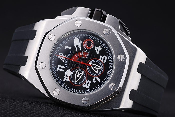Bracelet: correa de caucho Negro con relieve de calor sello Audemars Piguet Royal Oak Offshore y un Audemars Piguet inscrito ion-plateado gancho hebilla clasp