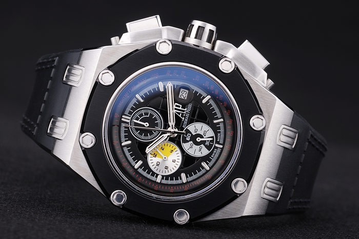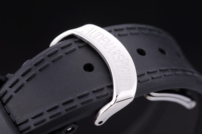 Bracelet de acero inoxidable: El calor en relieve Audemars Piguet Swiss Made logotipo y correa de caucho negro con Audemars Piguet grabado inoxidable acero gancho hebilla clasp