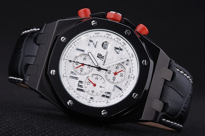 Crown: acero inoxidable logotipo de Audemars Piguet grabado esmalte rojo calado corona con dos coronas más pequeñas a cada lado de it
