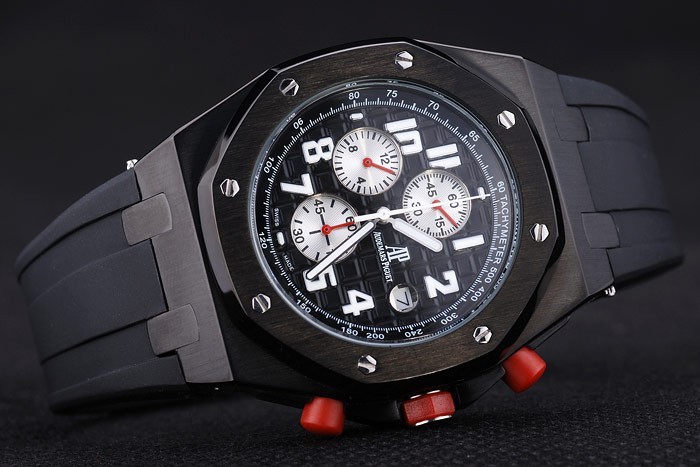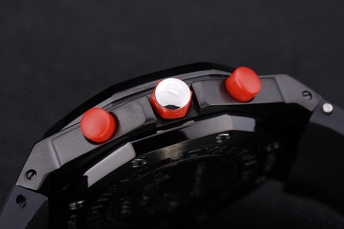 Crown: acero inoxidable logotipo de Audemars Piguet grabado esmalte rojo calado corona con dos coronas más pequeñas a cada lado de it
