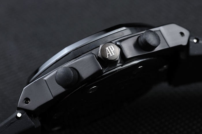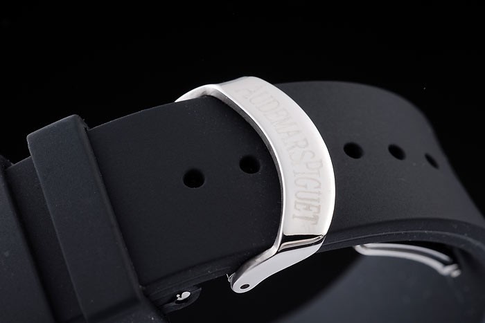 Bracelet: Audemars Piguet repujado correa de caucho negro con Audemars Piguet grabado de oro rosa plegado en clasp