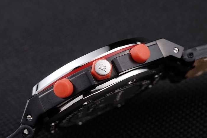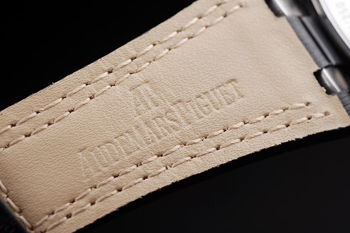 Bracelet de acero inoxidable: El calor en relieve correa de piel de cocodrilo negro Audemars Piguet con costuras de color blanco doble y Audemars Piguet de acero inoxidable grabado plegable en clasp