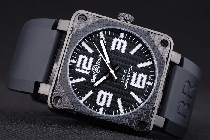 Bracelet de acero inoxidable: Bell & Ross logo y el producto de código en relieve correa de caucho negro con iones niquelado gancho hebilla clasp