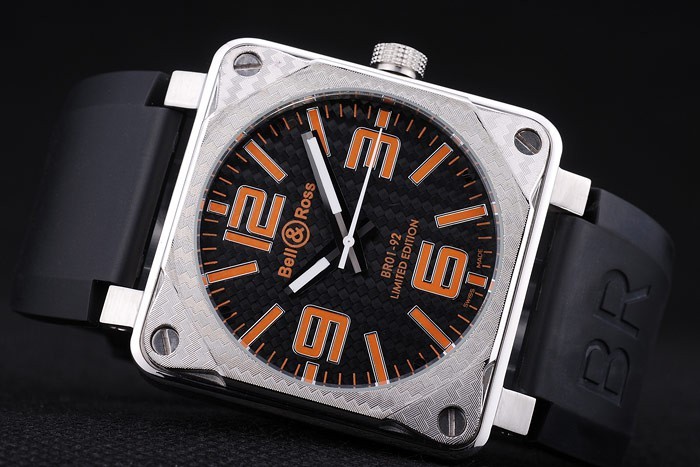 Bracelet: Bell & Ross logo y el producto de código en relieve correa de caucho negro con acero inoxidable gancho hebilla clasp