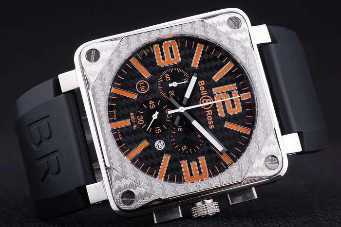 Bracelet de acero inoxidable: El calor en relieve Bell & Ross logotipo y correa de caucho negro código de producto con la BR inscribe acero inoxidable cepillado gancho de la hebilla clasp