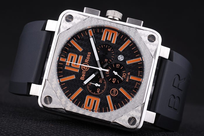 Crown: Bell & Ross logotipo grabado corona cutwork acero inoxidable con rectangulares coronas de pulsadores a cada lado de it