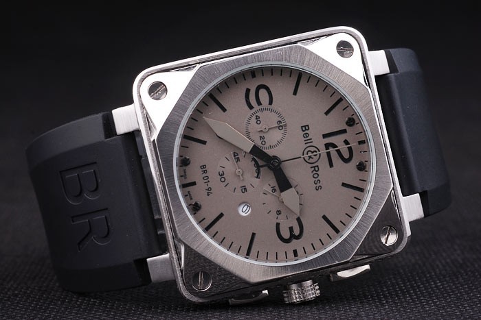 Volver: Acero inoxidable cepillado atornillado atrás con Bell & Ross inscriptions