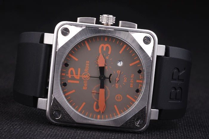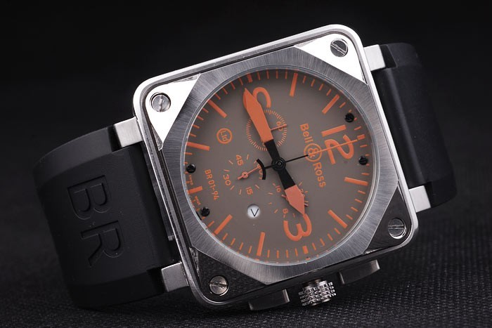 Crown: acero corona calado de acero con Bell & Ross logotipo y un cuadrado corona en cada lado de la principal Espesor crown