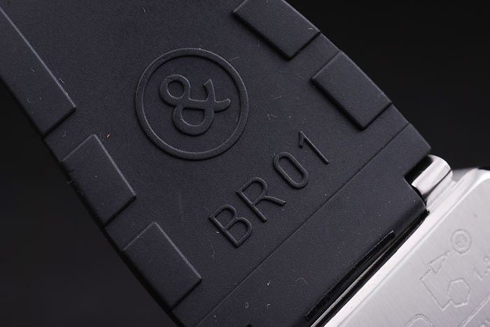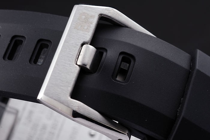 Bracelet: correa de caucho Negro con el logotipo en relieve de calor, el número de modelo y el código de producto y BR grabado acero inoxidable cepillado de gancho hebilla de cierre de