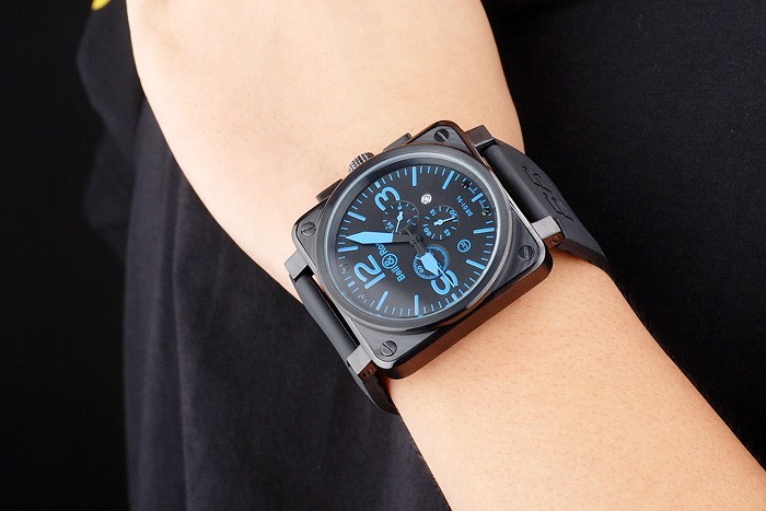 Crown: ión-corona chapada calado con Bell & Ross logotipo y una corona cuadrada a ambos lados de la principal Espesor crown