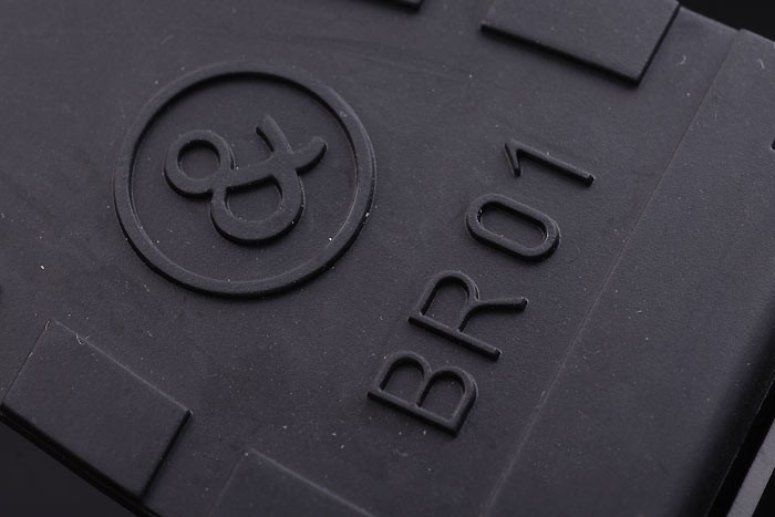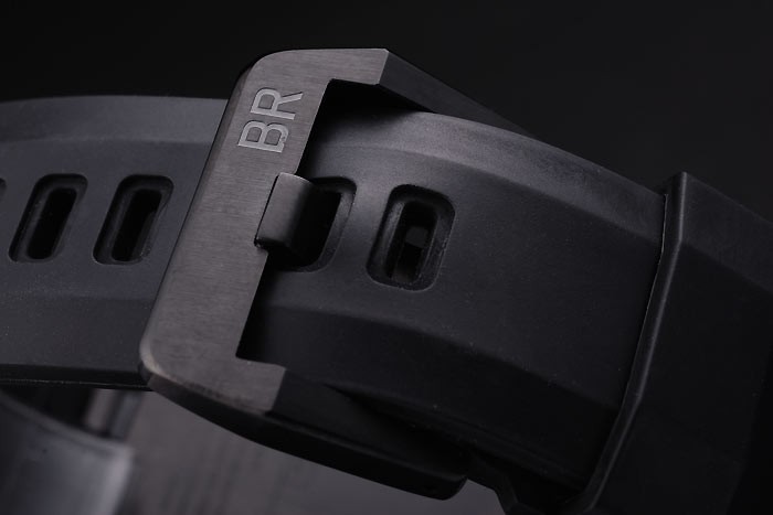 Bracelet de acero inoxidable: correa de caucho Negro con el logotipo en relieve de calor, el número de modelo y el código del producto y BR grabado de iones de chapado de gancho hebilla de cierre de