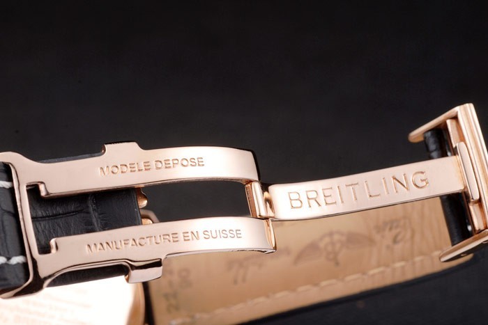 Bracelet de acero inoxidable: correa de cuero Negro cocodrilo con la patente costuras de color blanco y el calor en relieve grabados Breitling y grabado 18k oro amarillo plateado doblar por la hebilla con el logo de Breitling en top