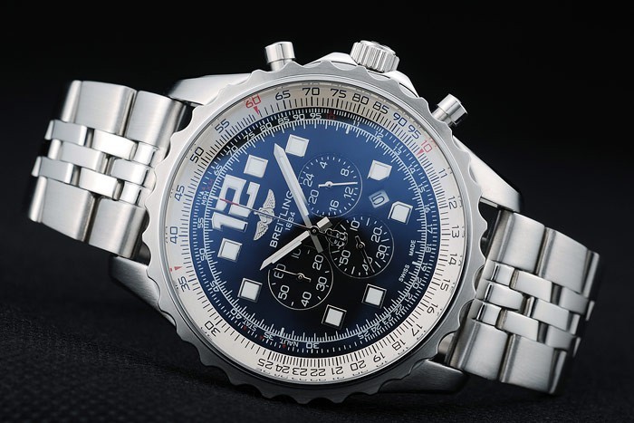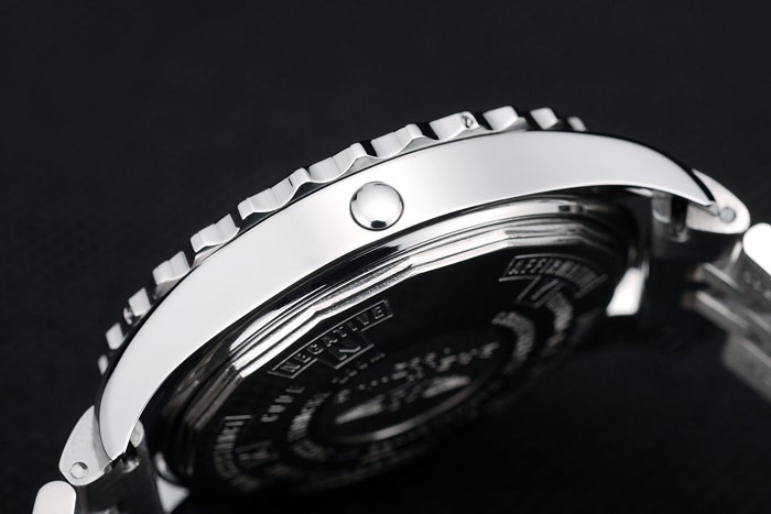 Este reloj tiene el vidrio AR. El color de la cara aparecerá diferentes colores dependiendo de cómo la luz cae sobre itBack: Acero inoxidable pulido complemento de vuelta con Breitling engravings