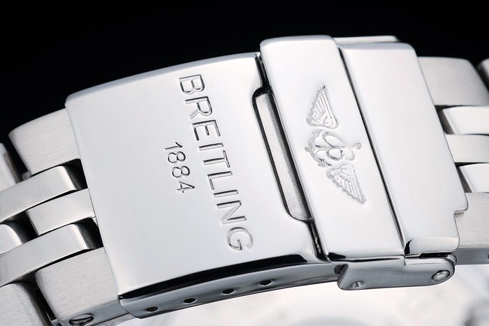 Crown: pulido corona calado de acero inoxidable con Breitling logotipo y dos pulsadores coronas de acero inoxidable más pequeños a cada lado de it