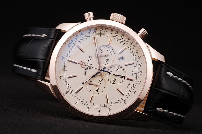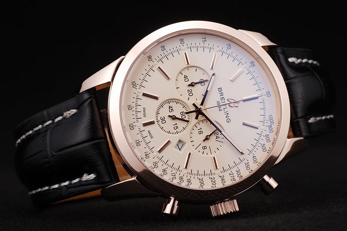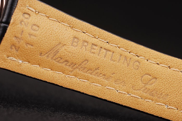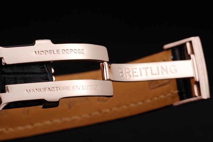Bracelet: Calor en relieve correa de piel de cocodrilo negro con costuras Breitling hilo blanco y un plegado logotipo grabado Breitling en rosa bañados en oro clasp