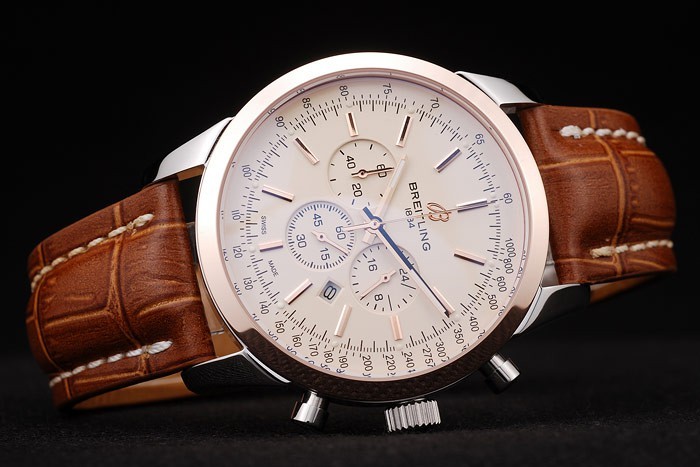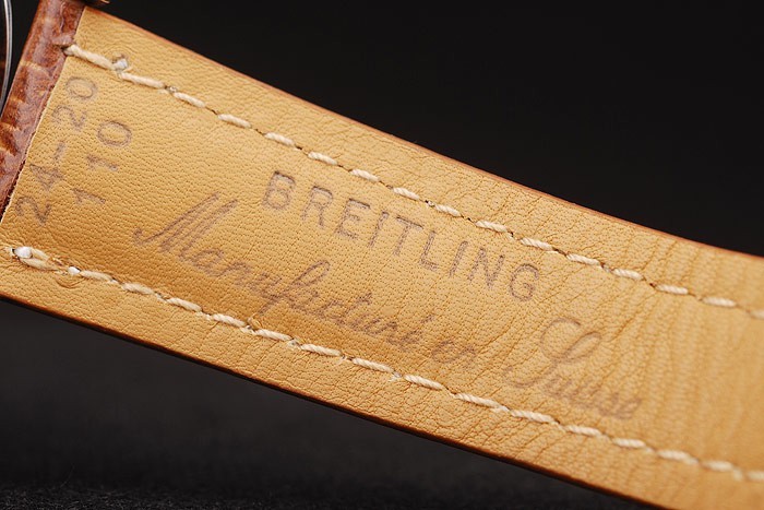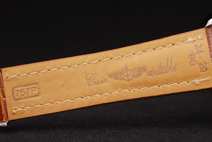 Bracelet de acero inoxidable: El calor en relieve correa de piel de cocodrilo marrón Breitling con costuras de hilo blanco y un logotipo de Breitling grabado plegable en acero clasp