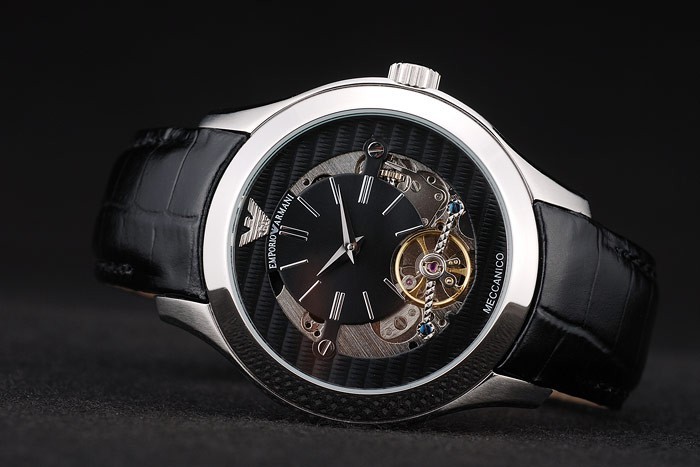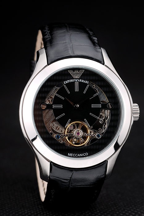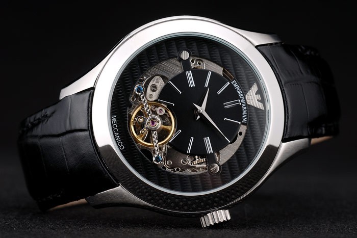 Crown: pulido corona calado de acero inoxidable con perno de esmalte negro y Emporio Armani logo