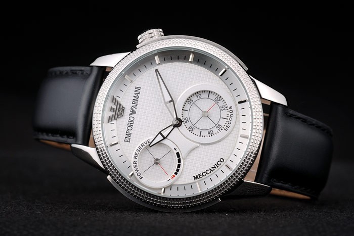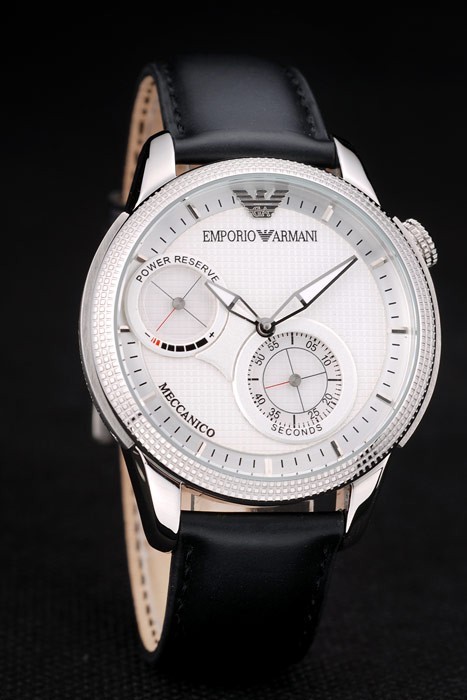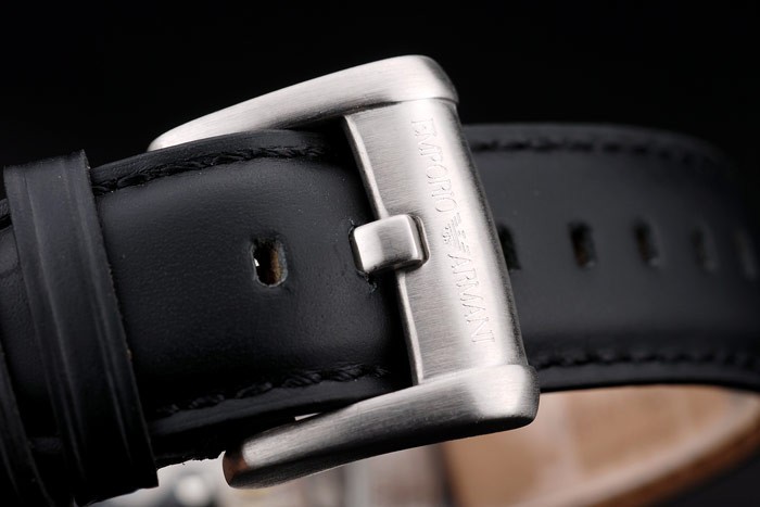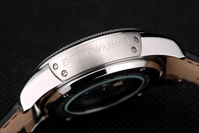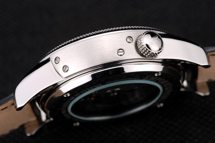 Crown: pulido corona calado de acero inoxidable en la esquina superior derecha con el perno prisionero del esmalte negro y Emporio Armani logo