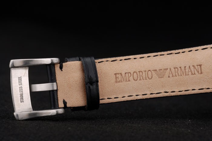 Bracelet de acero inoxidable: correa de cuero de Emporio Armani de calor en relieve de cocodrilo negro con Emporio Armani y logo grabado acero inoxidable cepillado de gancho hebilla clasp