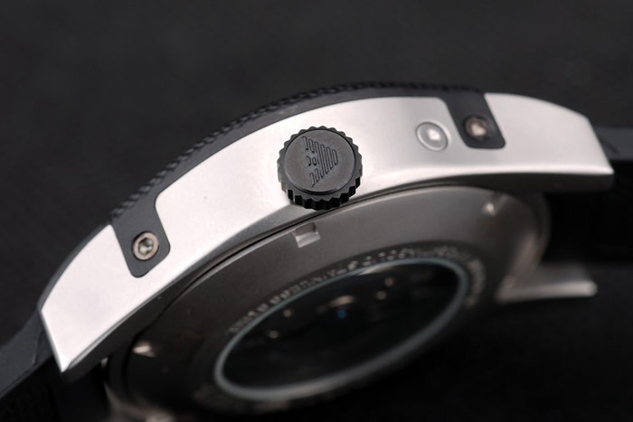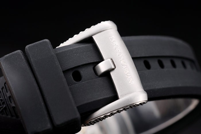 Crown: caucho Negro cutwork corona con logo Emporio Armani grabado iónico chapado stud