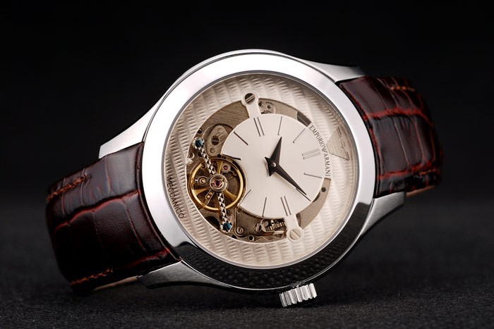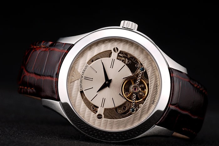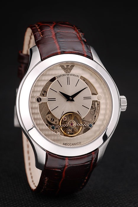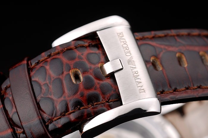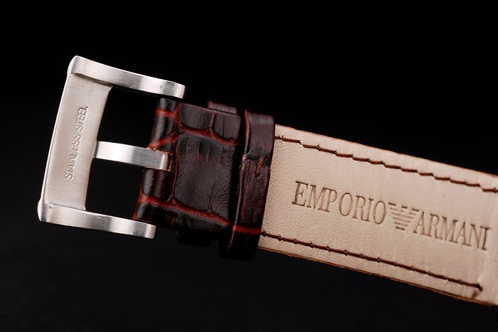 Bracelet: calor correa de piel de cocodrilo marrón en relieve Emporio Armani Emporio Armani y logotipo grabado cepillado gancho de acero inoxidable -buckle Longitud clasp
