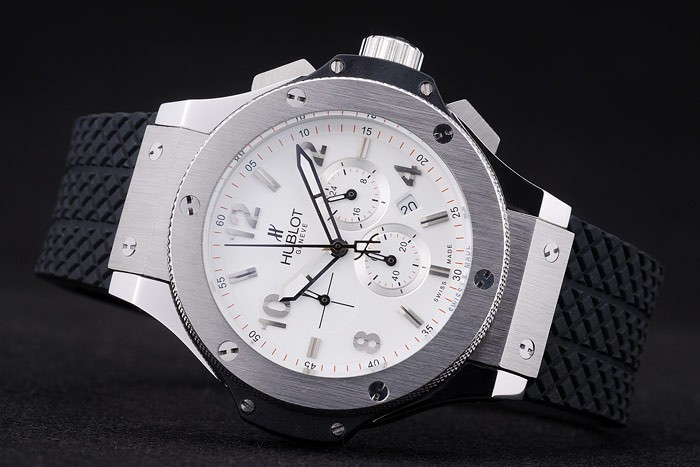 Crown: pulido corona cutwork acero inoxidable con Hublot perno de goma logotipo y coronas de acero inoxidable de botón del perno prisionero de goma a cada lado de it