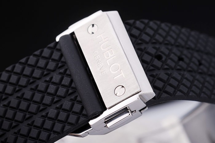 Bracelet de acero inoxidable: El calor en relieve logotipo y Hublot Geneve textura correa de caucho negro con Hublot Geneve grabado de acero inoxidable plegable de Pulsar -release Longitud gancho clasp