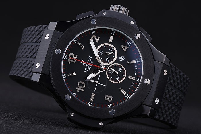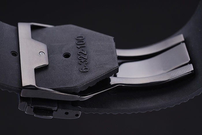 Bracelet: banda de goma negro con textura con el ion-plateado pulsador cierre de gancho y Hublot engravings