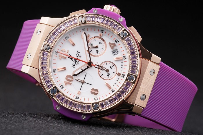 Bracelet de acero inoxidable: textura de la goma púrpura con pulsador de oro rosa broche de gancho y Hublot engravings