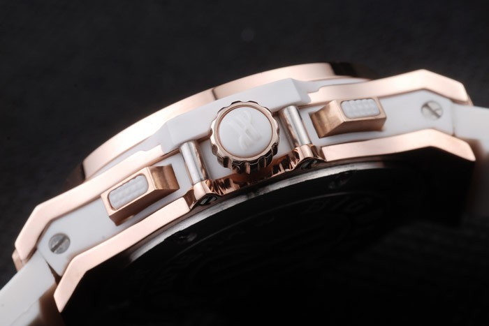Bracelet de acero inoxidable: banda de goma blanca con textura con cierre de botón de oro rosa gancho y Hublot engravings