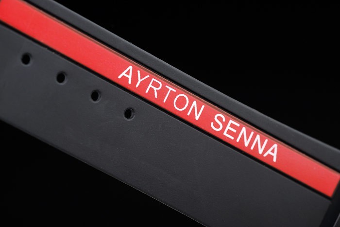 Bracelet: banda de goma negro texturado con pulsador cierre de gancho de ión-plateado, grabado en relieve de calor LUNA ROJA y Longitud Hublot inscriptions