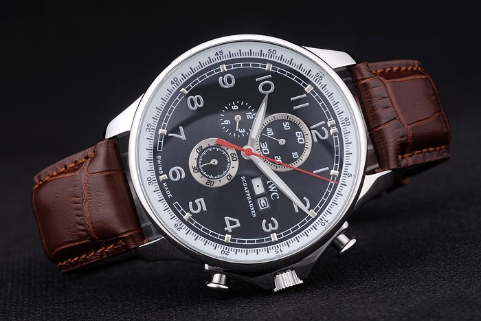 Bracelet de acero inoxidable: correa de cuero IWC Schaffhausen calor en relieve de cocodrilo marrón con CBI inscrito acero inoxidable gancho hebilla clasp