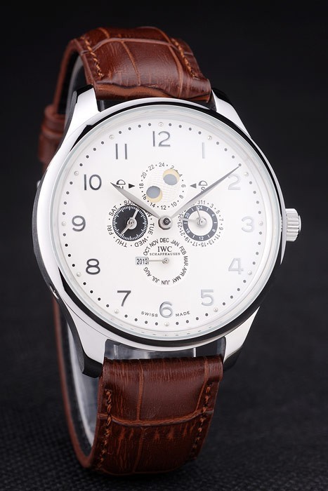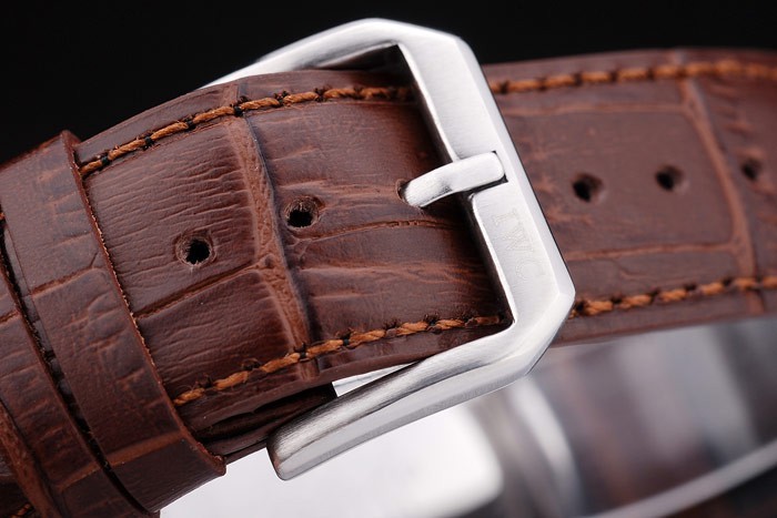 Bracelet de acero inoxidable: correa de cuero IWC Schaffhausen calor en relieve de cocodrilo marrón con CBI inscrito acero inoxidable gancho hebilla clasp