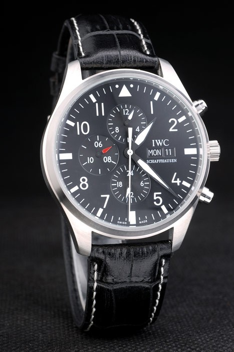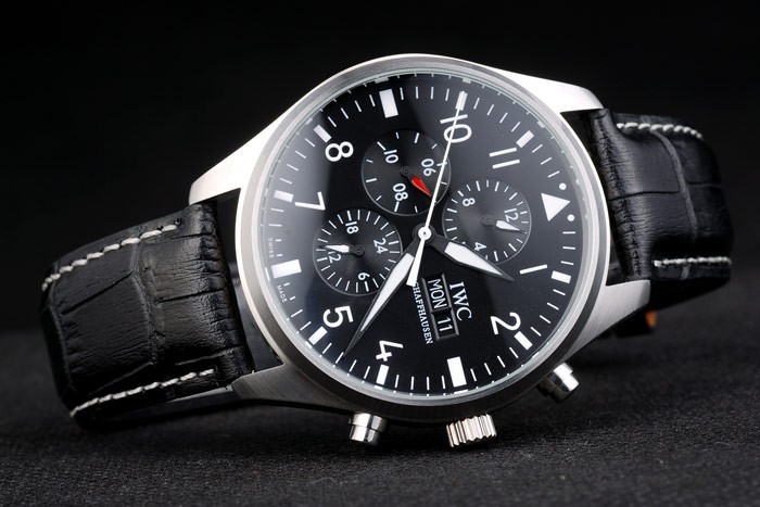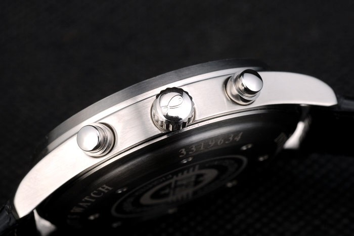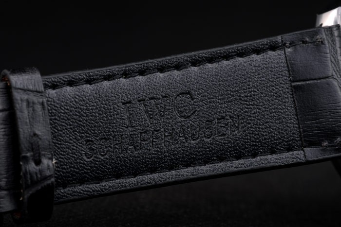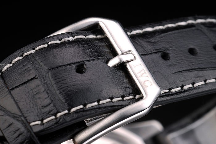 Bracelet de acero inoxidable: el calor correa de piel de cocodrilo negro en relieve IWC Schaffhausen con costuras de hilo blanco y la CBI inscrito inoxidable acero gancho hebilla clasp