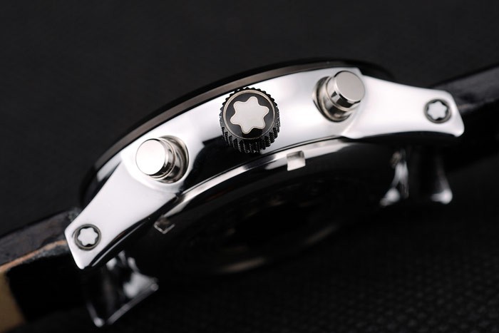 Crown: enchapado en ion corona de calado con el logotipo de Montblanc y dos coronas de acero inoxidable pulido pulsadores a ambos lado de it