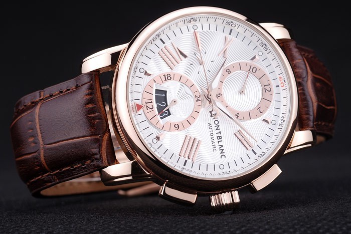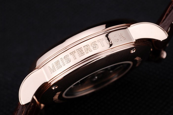 Crown: rosa de 18 quilates chapado en oro de la corona cutwork con el logotipo de Montblanc y dos coronas de pulsadores rectangulares a cada lado de it
