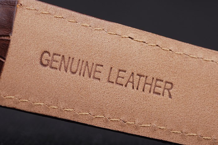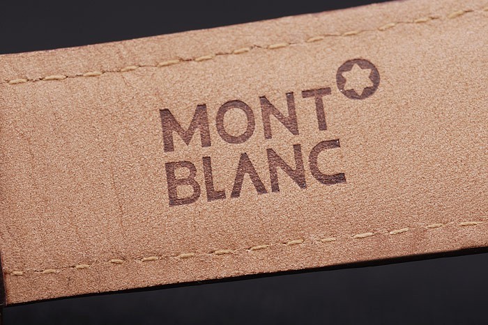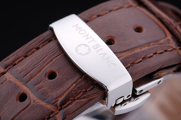 Bracelet de acero inoxidable: El calor en relieve correa de piel de cocodrilo marrón MontBlanc con el nombre y el logotipo MontBlanc grabado pulido acero inoxidable flip-sobre el gancho clasp